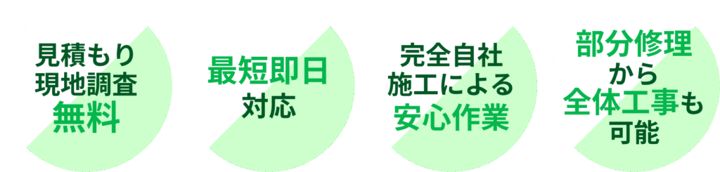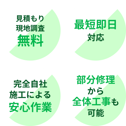 当社には「1級建築施工管理技士」「1級塗装技能士」などの資格保有者や、経験豊富な職人が多数在籍していることから、高い施工品質での修理を実現しています。